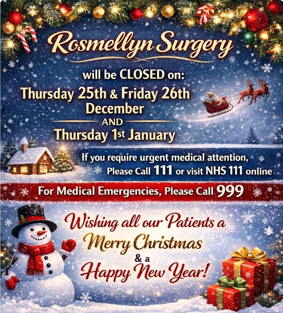 Rosmellyn Christmas Closure Posted on: 23rd December 202523rd December 2025 Please click on the link for more information